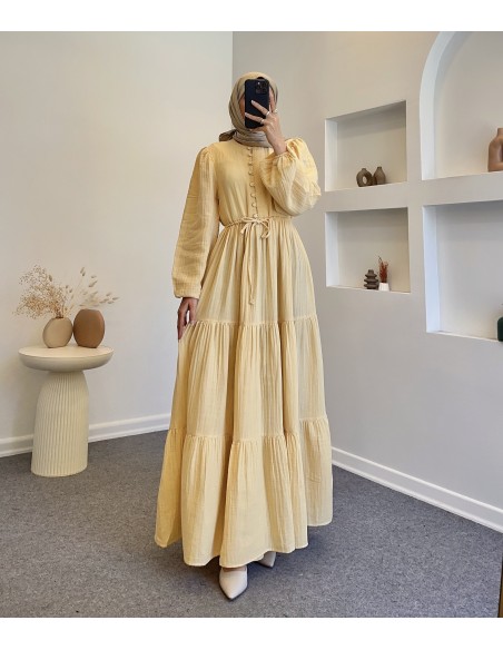4653 müslin elbise - Sarı