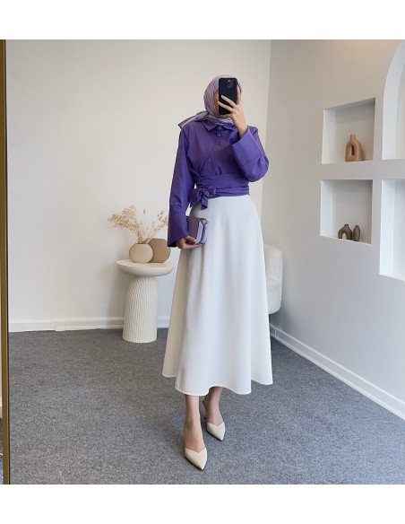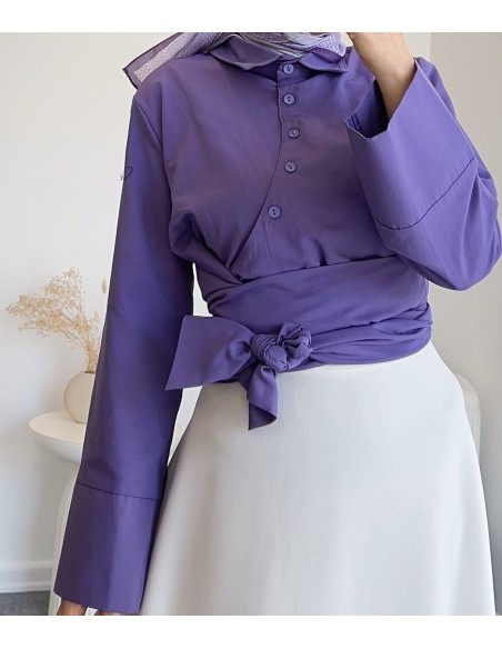 B2994 yan düğmeli bağlamalı gömlek -Lila