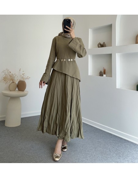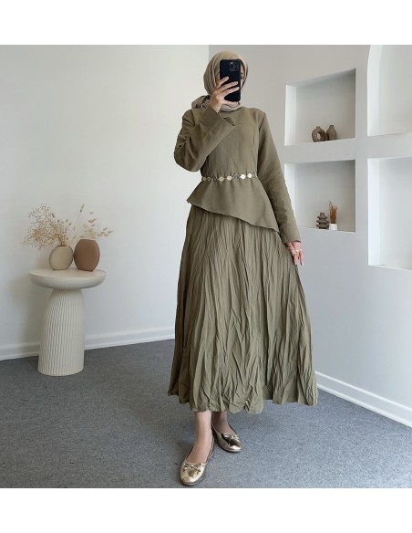6029 leur asimetrik etek takım- Haki