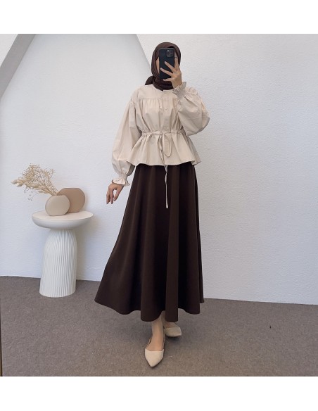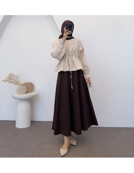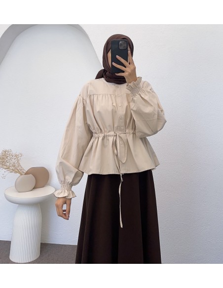 71273 Bel Tünelli Büzgülü Kısa Gömlek - Bej