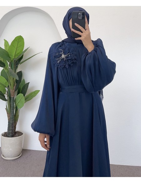 ürün şifon kumaştır broş çıkartılabilir seyyar kuşaklıdır arka kısmı fermuarlıdır içi tam boy astarlıdır