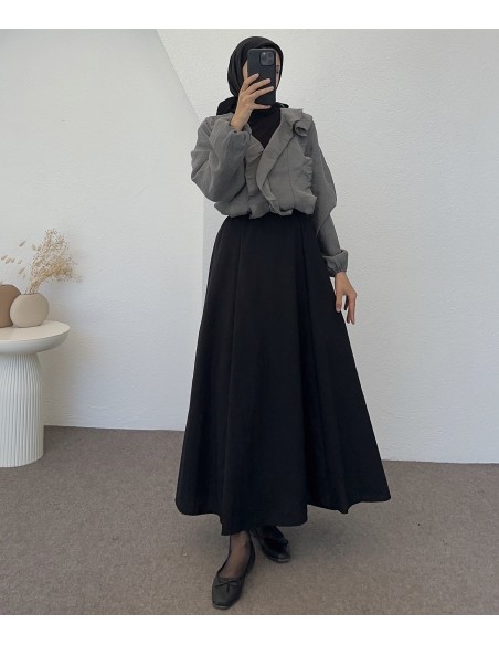 D29062 pamuklu etek -Siyah