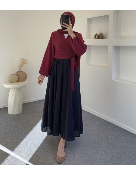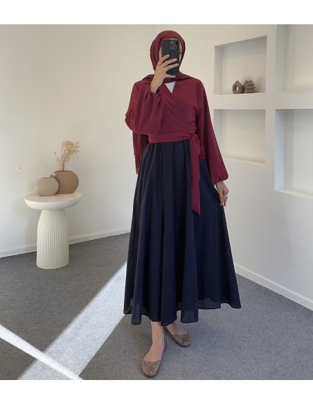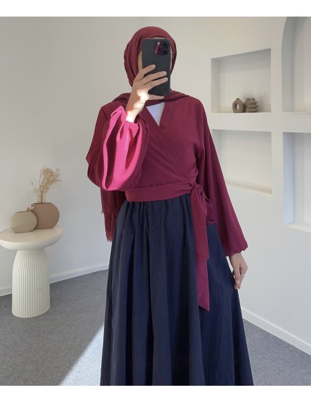 1313 kurvaze bağlamalı elfida bluz -Bordo
