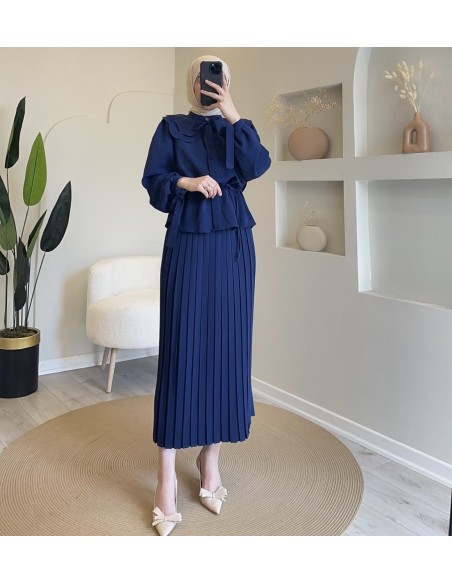 2095 bebe yaka etek takım-Lacivert