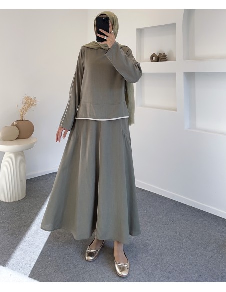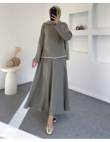 2687 çizgi detay etek takım-haki