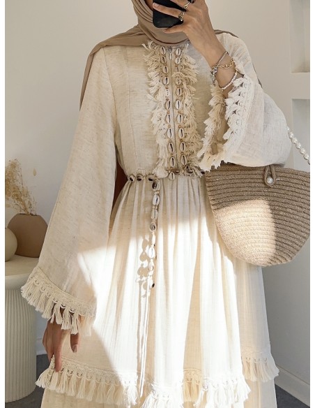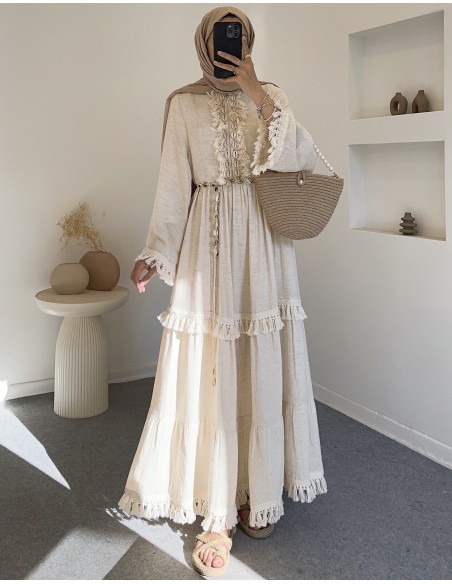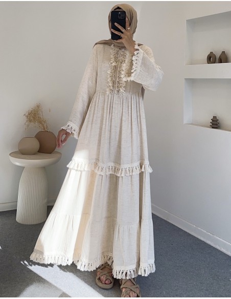 Keten kumaştır iç göstermez elbise boy 138 cm