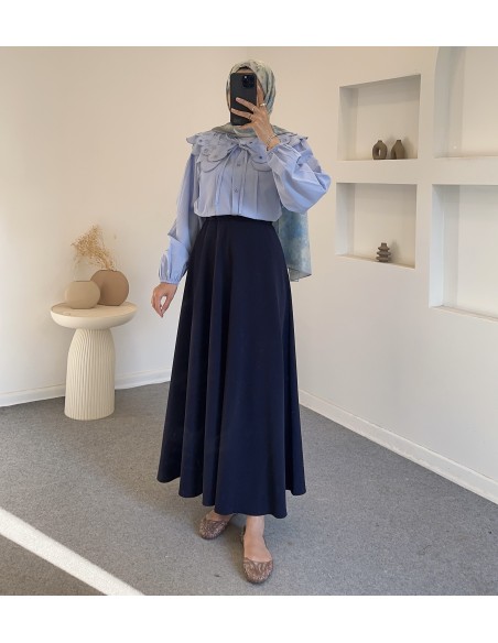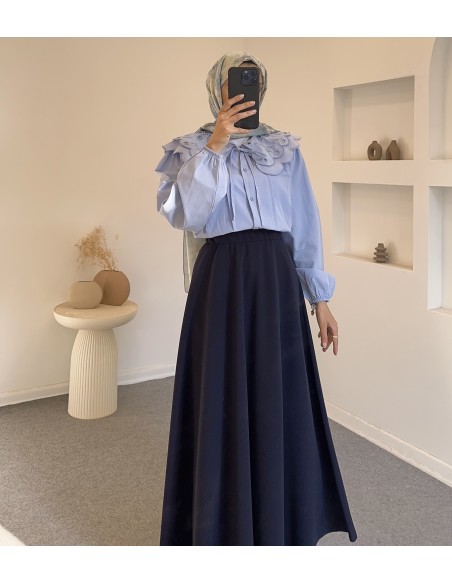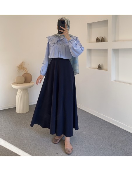2975 nervür detay gömlek -Mavi