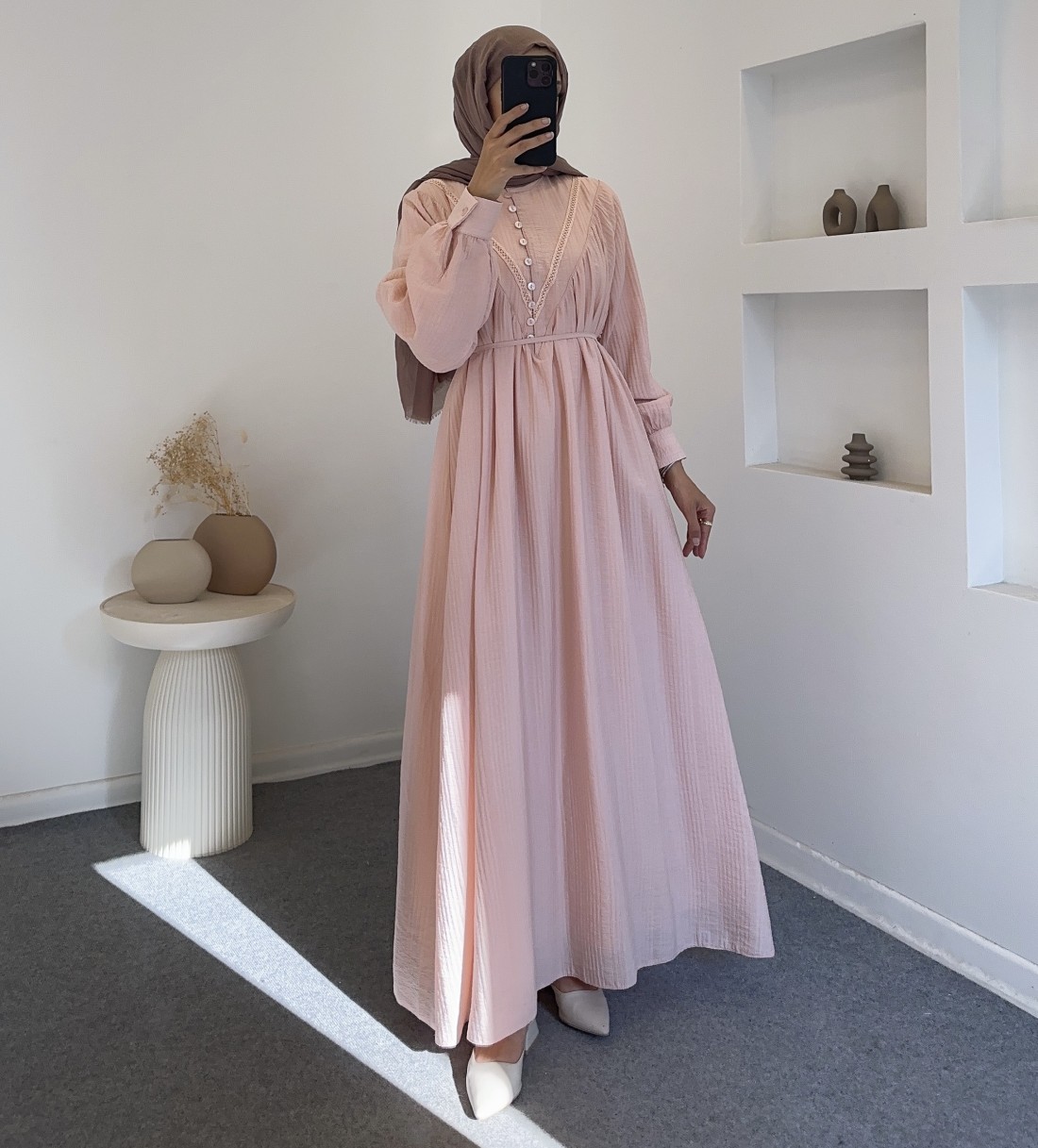 Pamuklu vual kumaşa sahiptir.