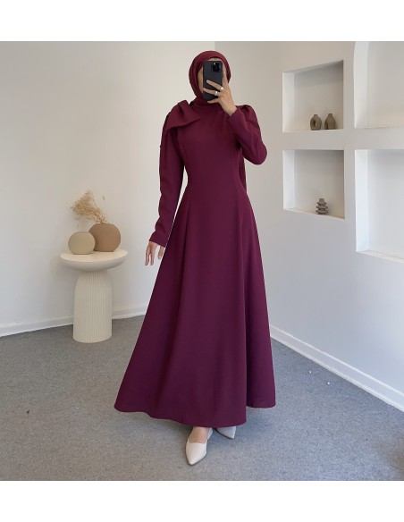 9178 omuz fiyonk detay elbise- bordo