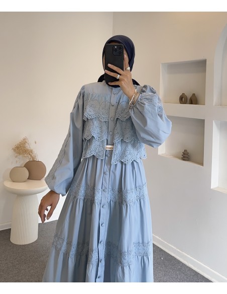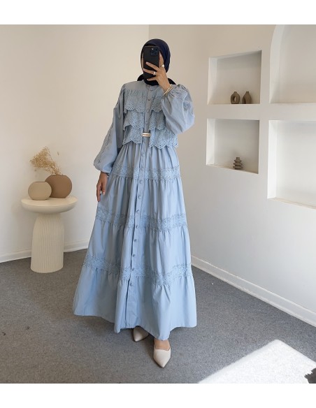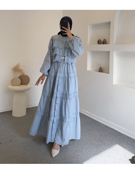 6594 güpürlü elbise - mavi
