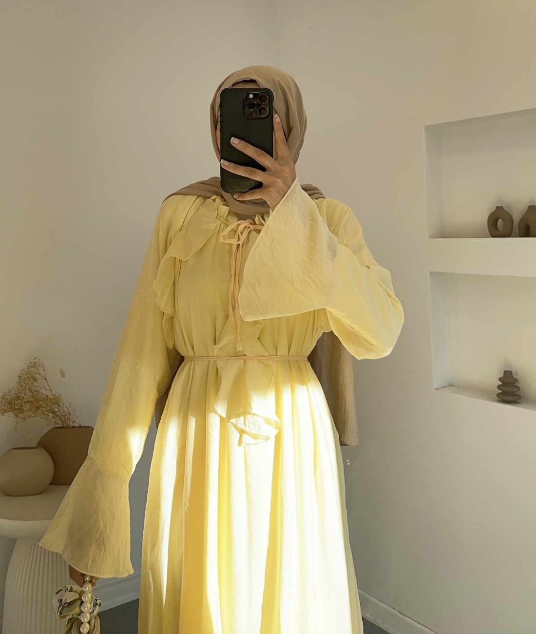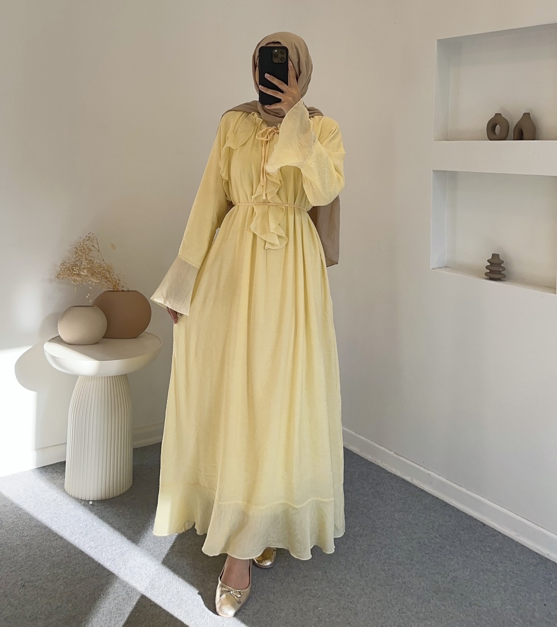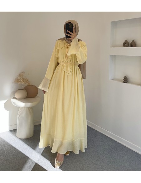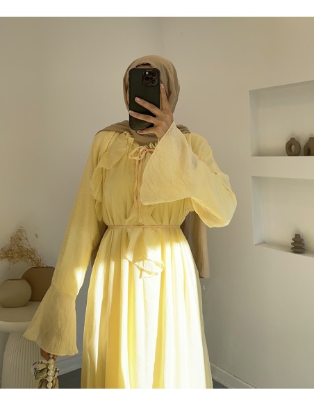 6003 kolları geniş fırfırlı elbise - sarı