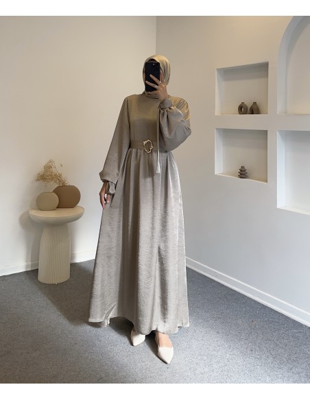 6105 saten elbise -vizon