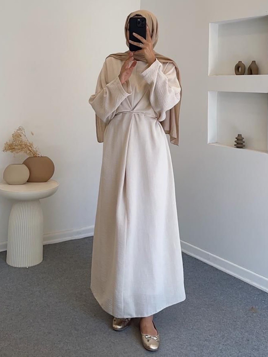 61596 yarasa kol elbise - taş