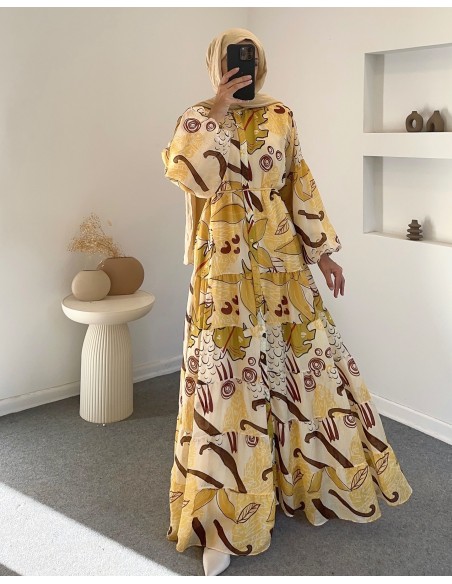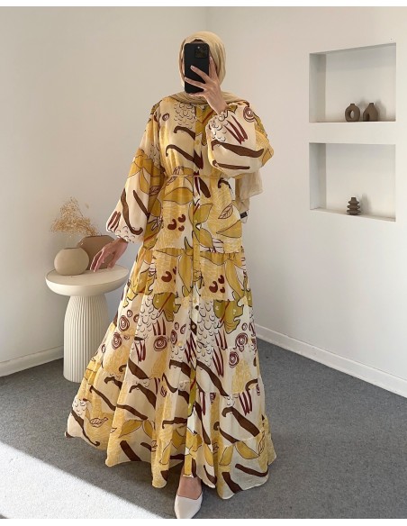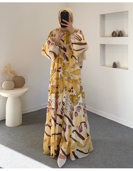 2518 Çiçek elbise - yeşil sarı