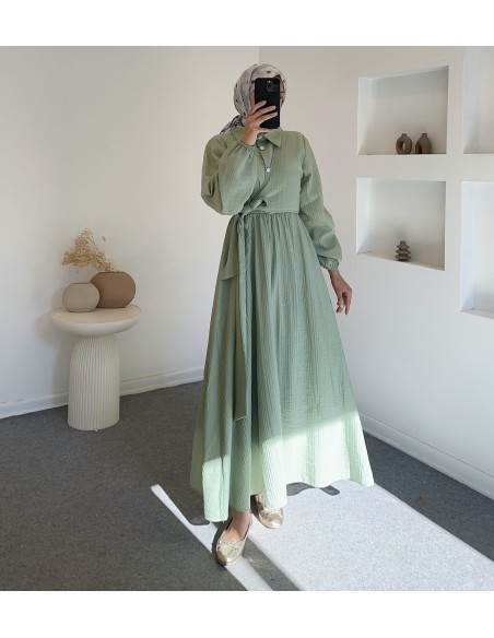 Gofre kumaştan üretilmiştir içi astarlıdır kurvaze bağlamalı elbise boy 135 cm