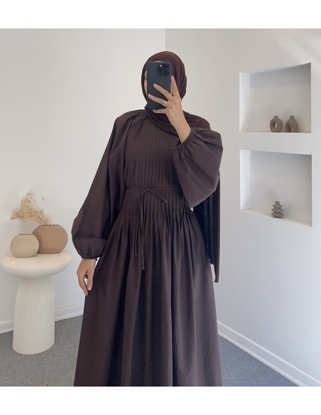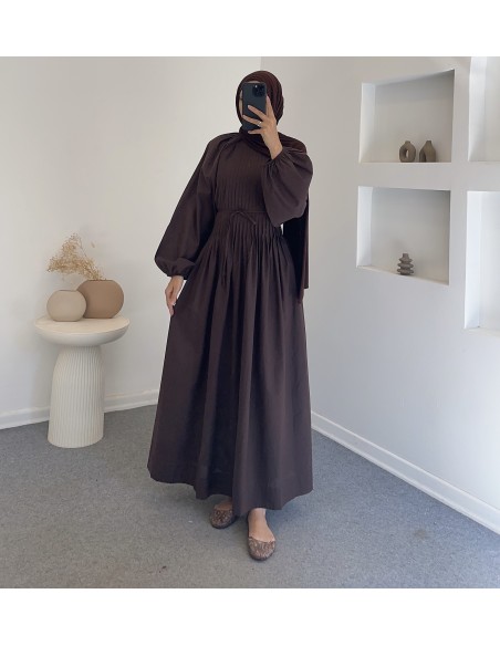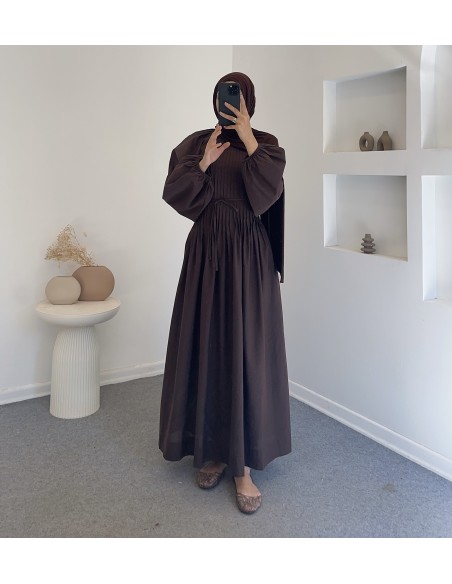25169 nervürlü elbise - Kahverengi