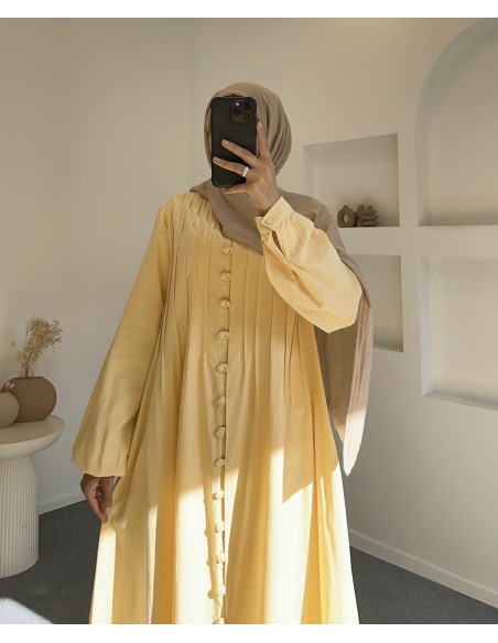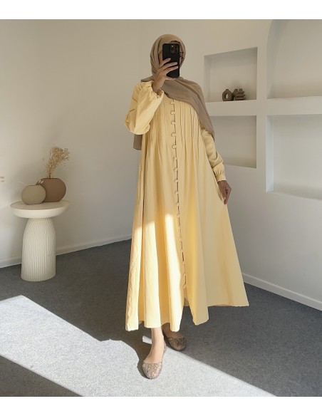 318 keten boydan düğmeli elbise -sarı