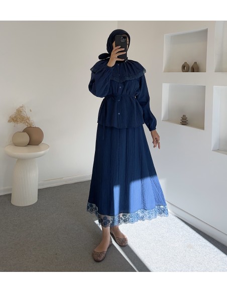 Gömlek, ortalama 55 cm, önü düğmeli, Kol ucu lastiklidir ve seyyar kuşaklıdır - Etek Kloş formdadır oldukça rahattır, Etek boyu ortalama 96 cm dir, Bel lastiklidir, Takım Komple astarlıdır.