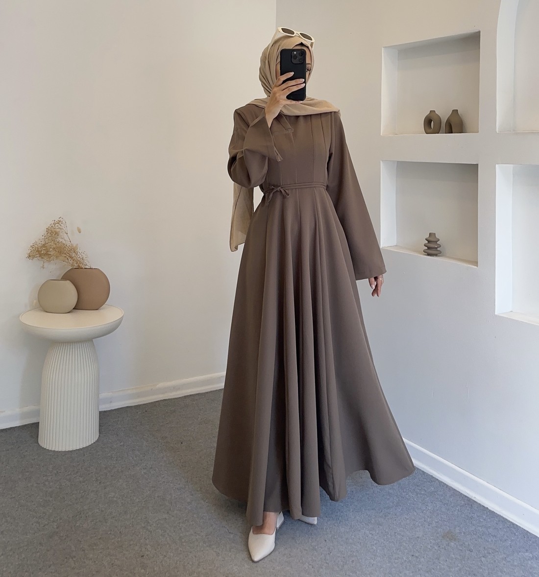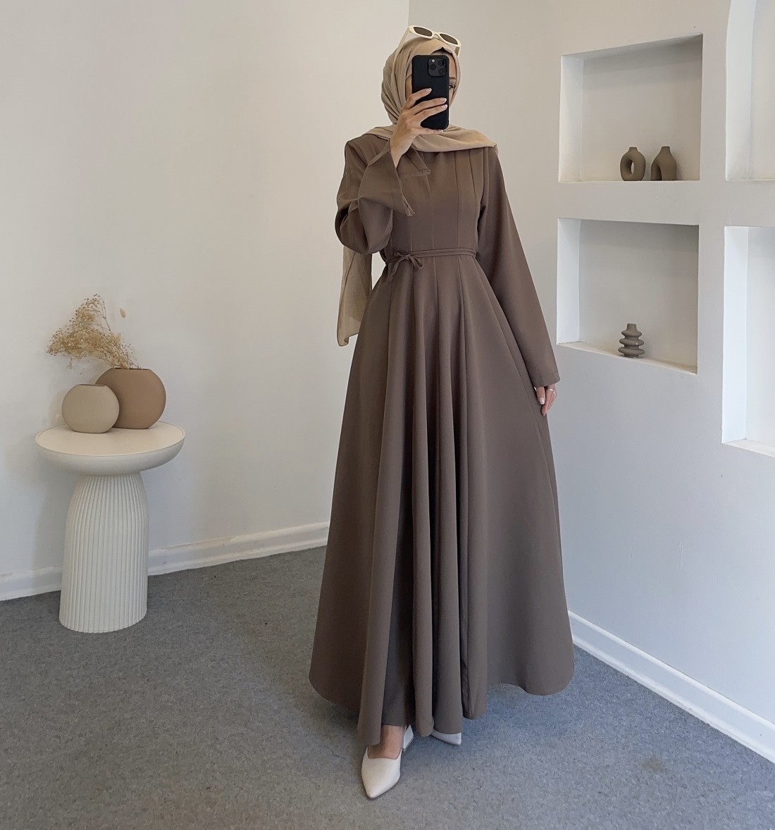 26021 angora elbise - Kahverengi
