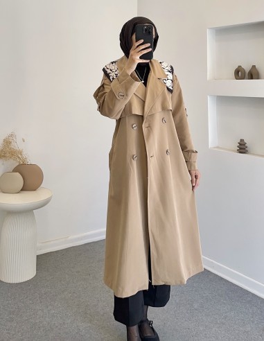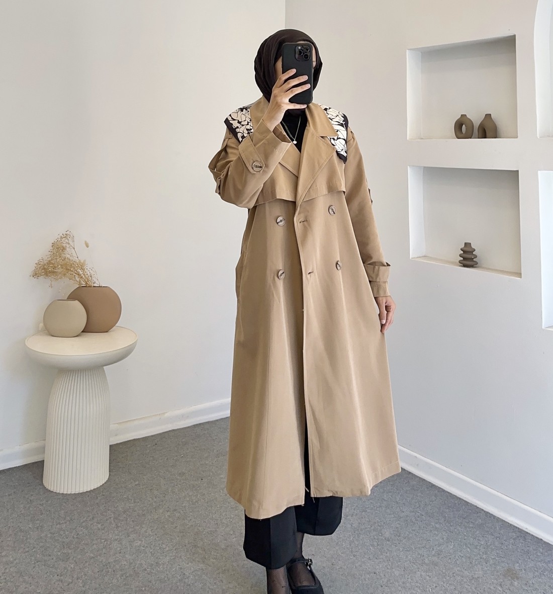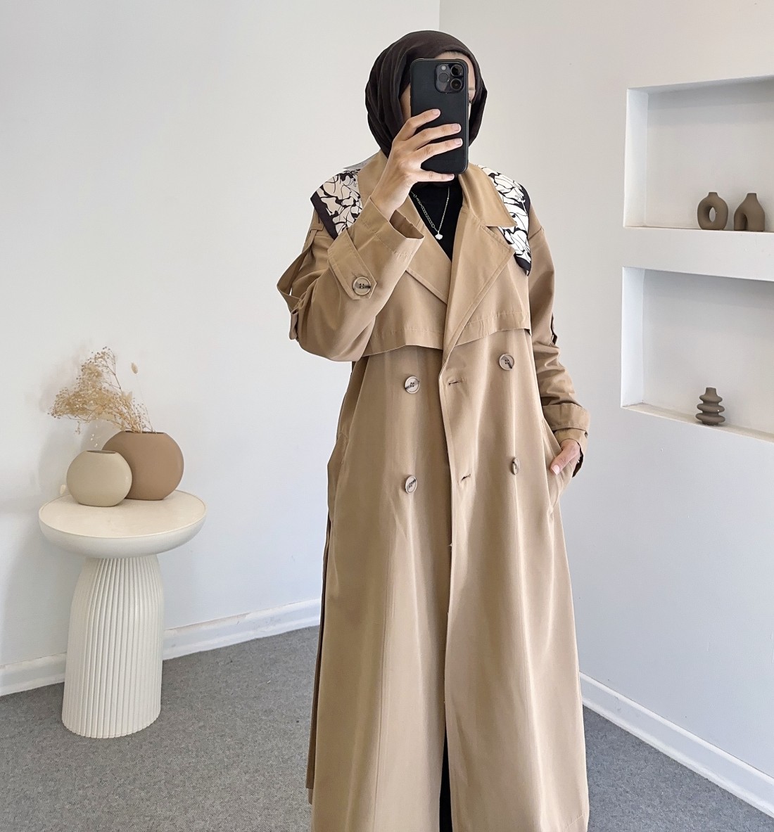 Ürün düşük omuz, cep detaylı, astarlı, kemerli ve düğmelidir. Ürünün kemeri çıkmaktadır.
