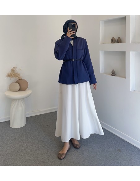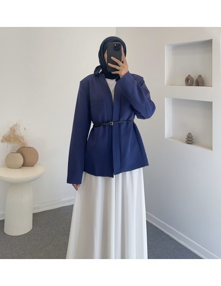 25027 kemerli ceket -Lacivert