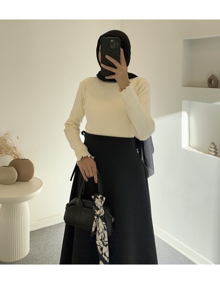 3144 balıkçı yaka bluz- krem