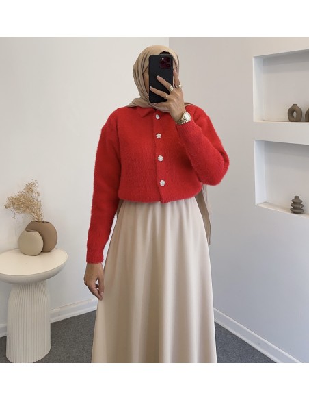 8532 tüylü hırka - Kırmızı