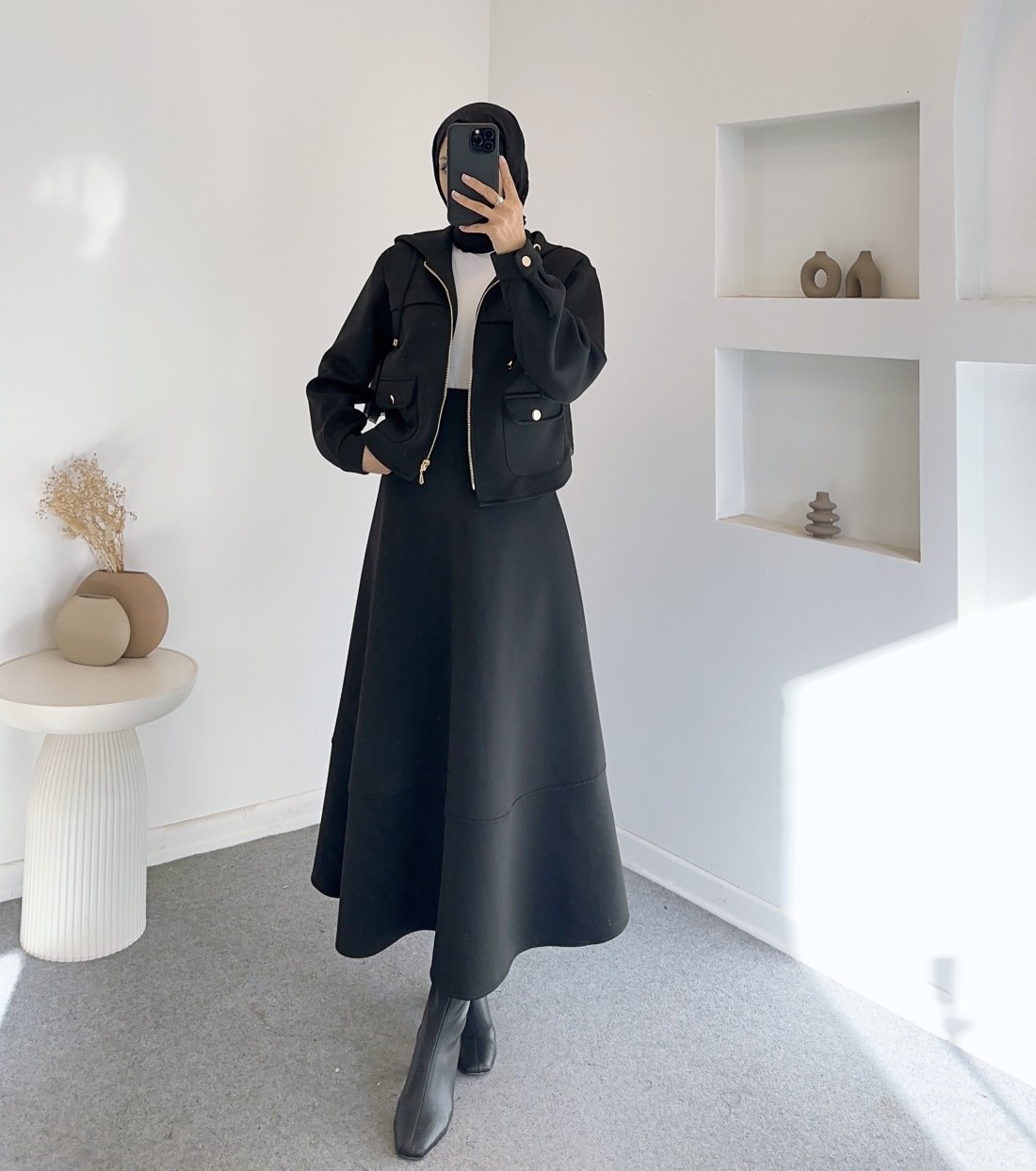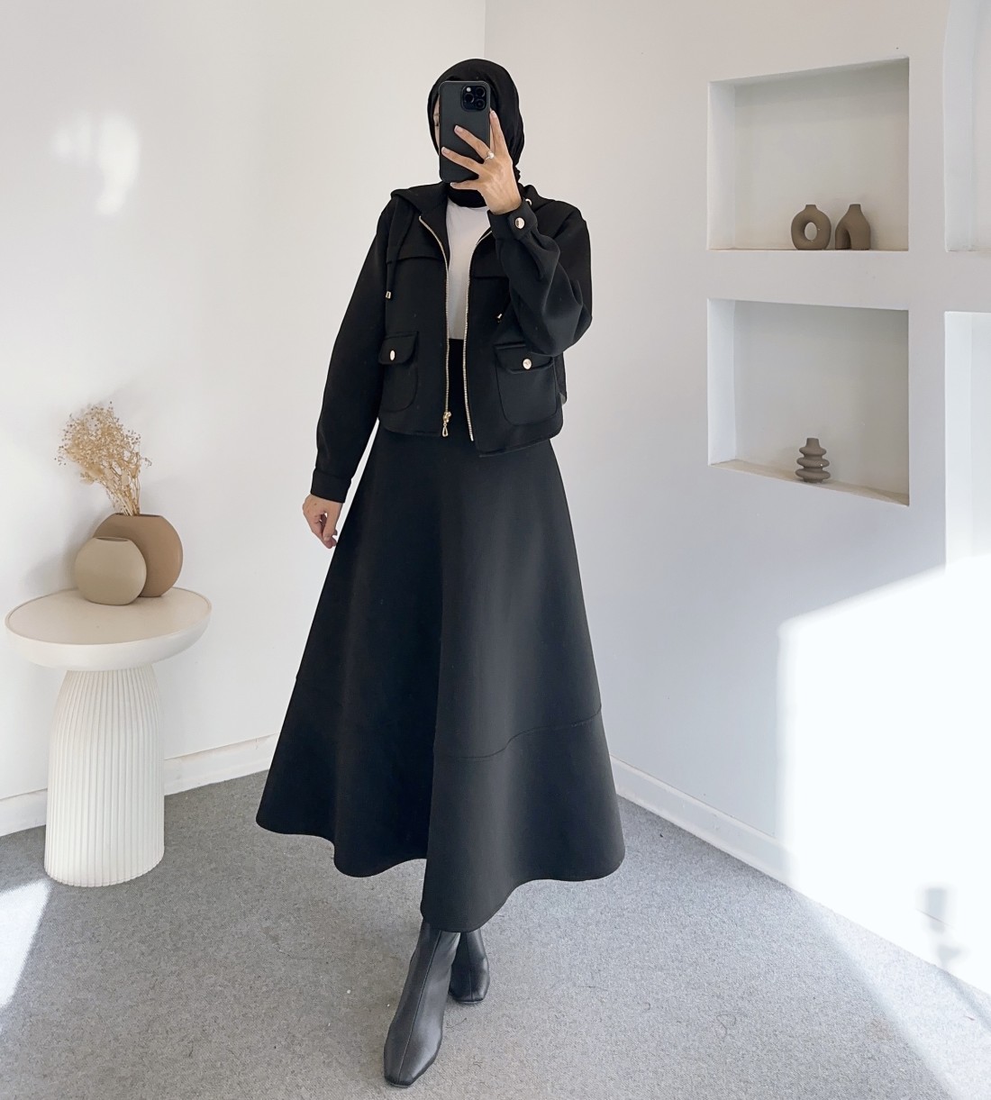 Kumaş Türü: Scuba kumaş — tok ve formunu koruyan yapıdadır.