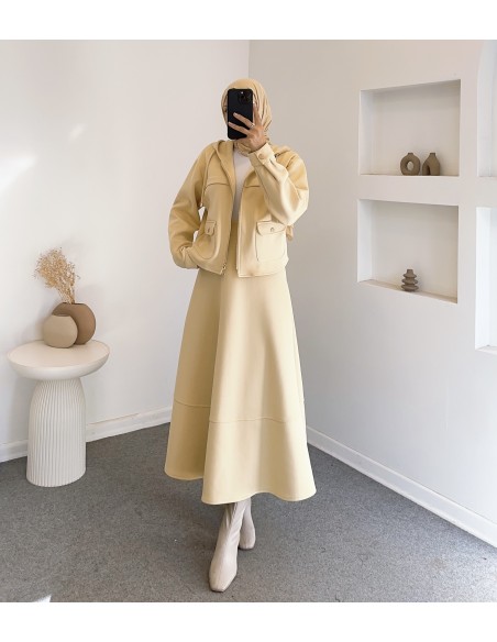Kumaş Türü: Scuba kumaş — tok ve formunu koruyan yapıdadır.