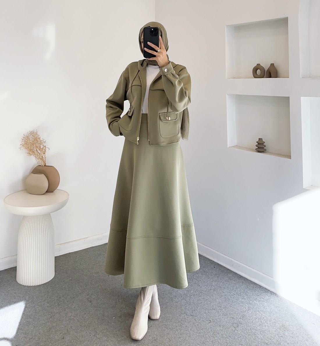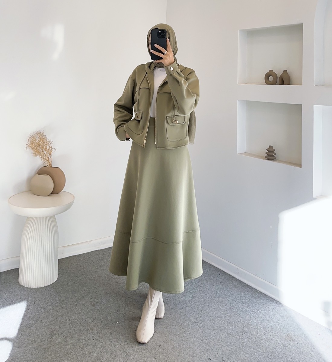 Kumaş Türü: Scuba kumaş — tok ve formunu koruyan yapıdadır.