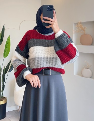 E172 renkli pofuduk kazak - bordo