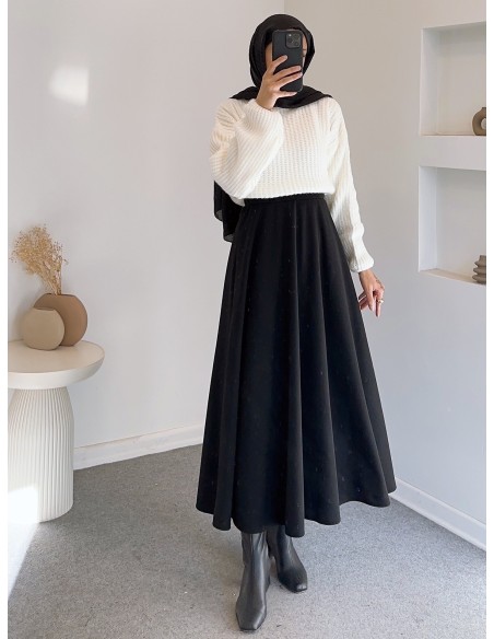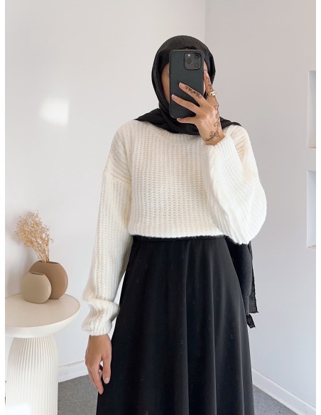 E199 düz renk pofuduk kazak- beyaz