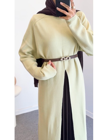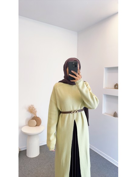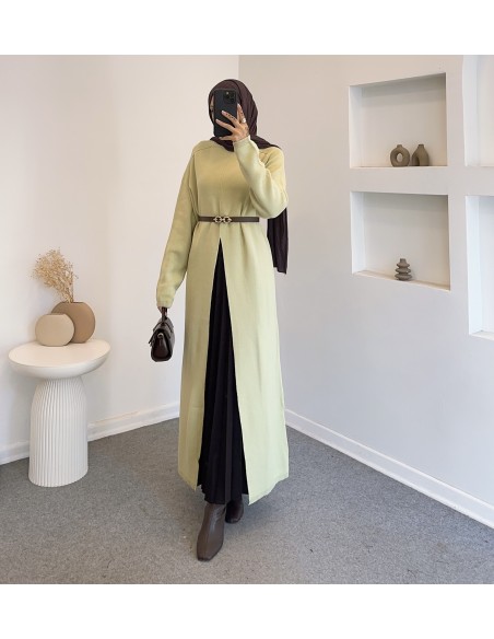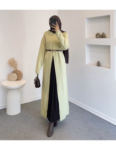14419 yırtmac detay elbise - yeşil