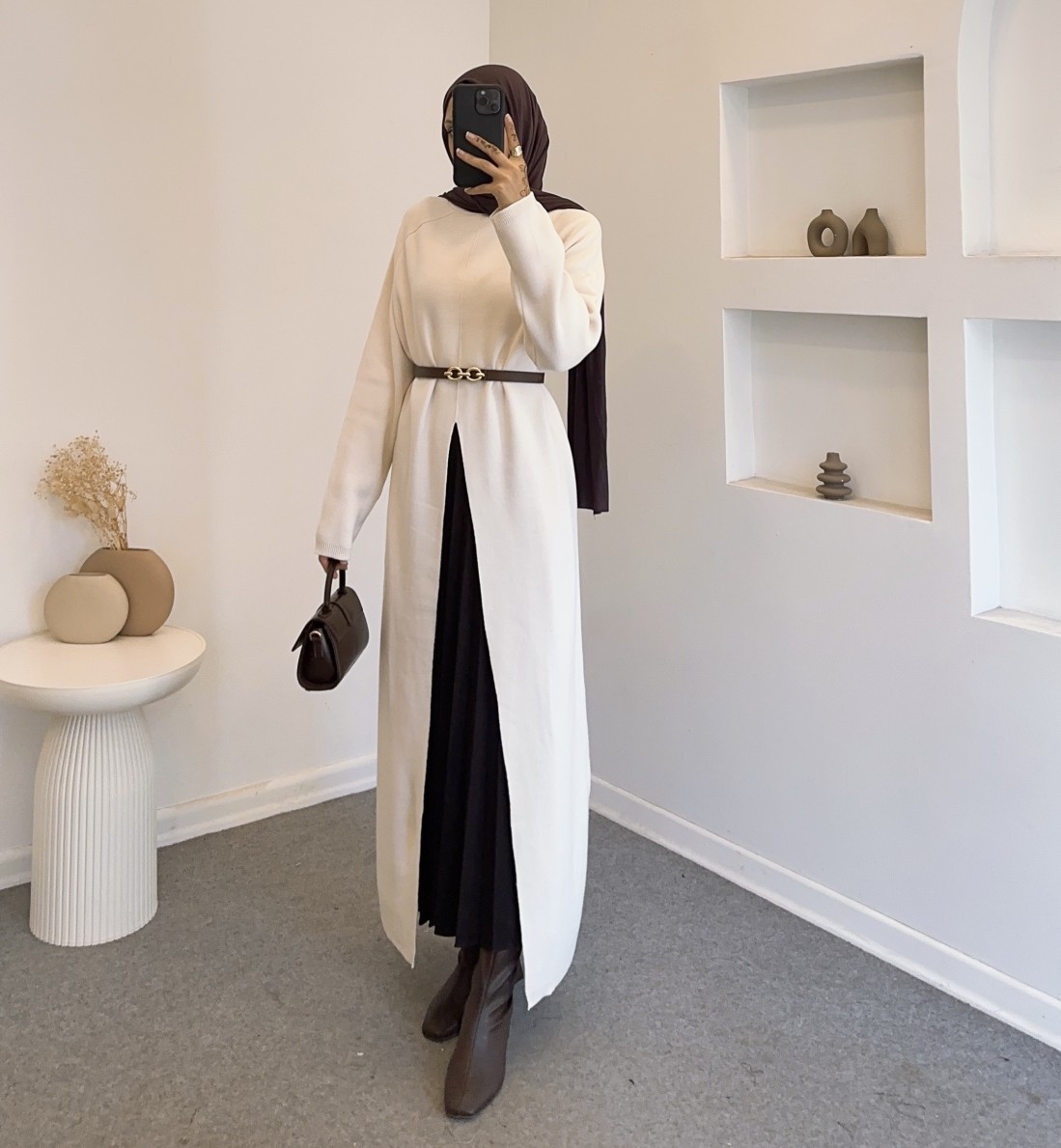 14419 yırtmac detay elbise - Taş