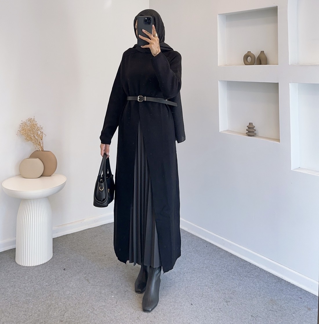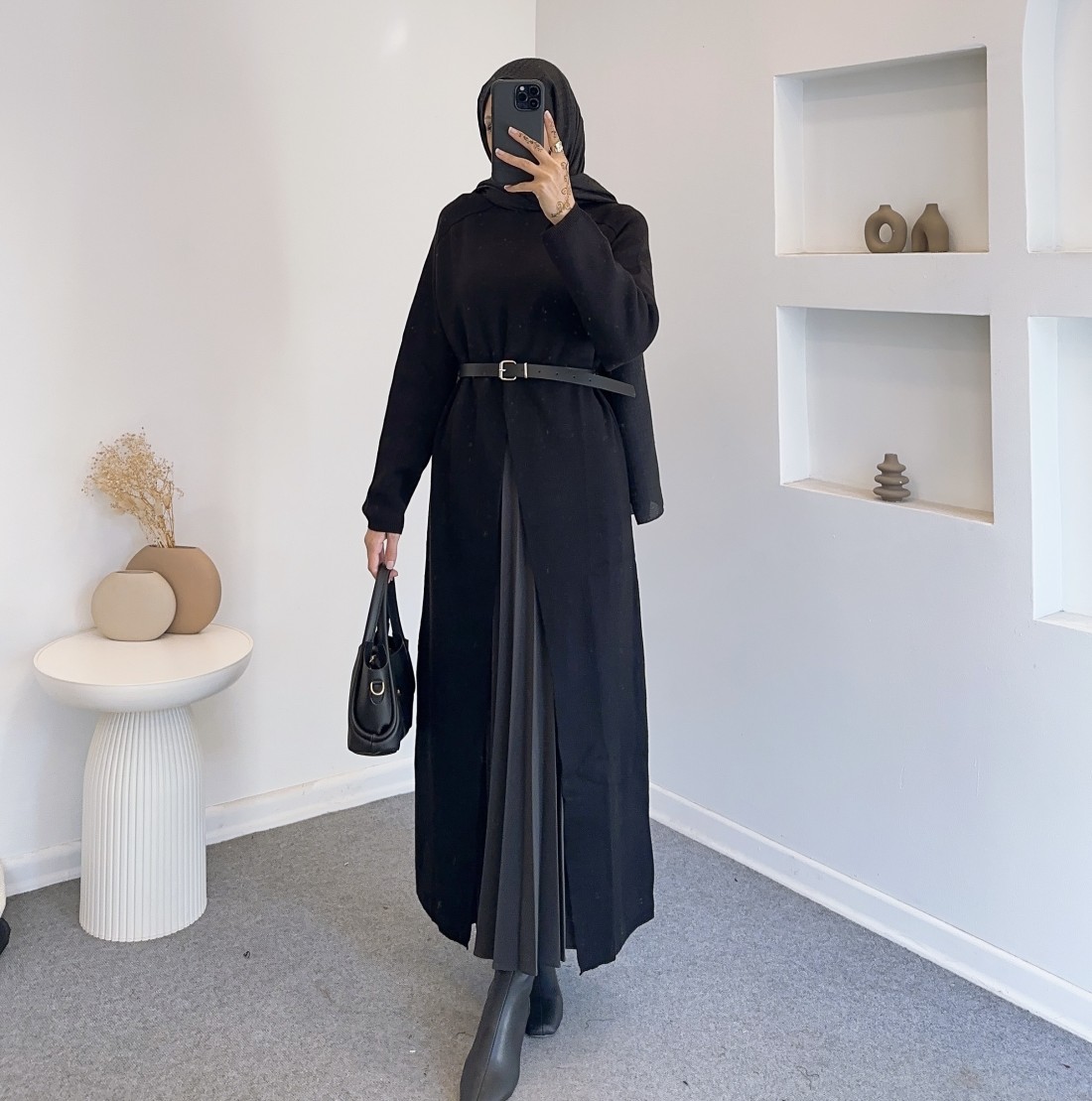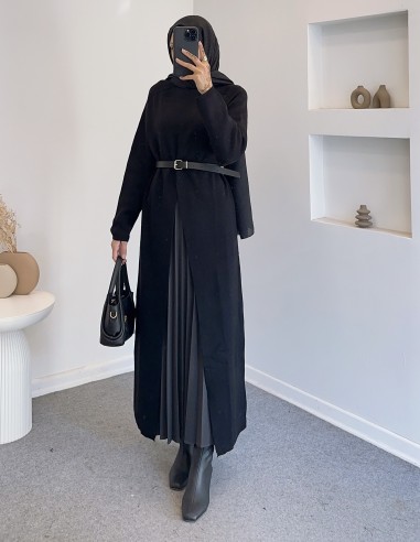 14419 yırtmac detay elbise - Siyah