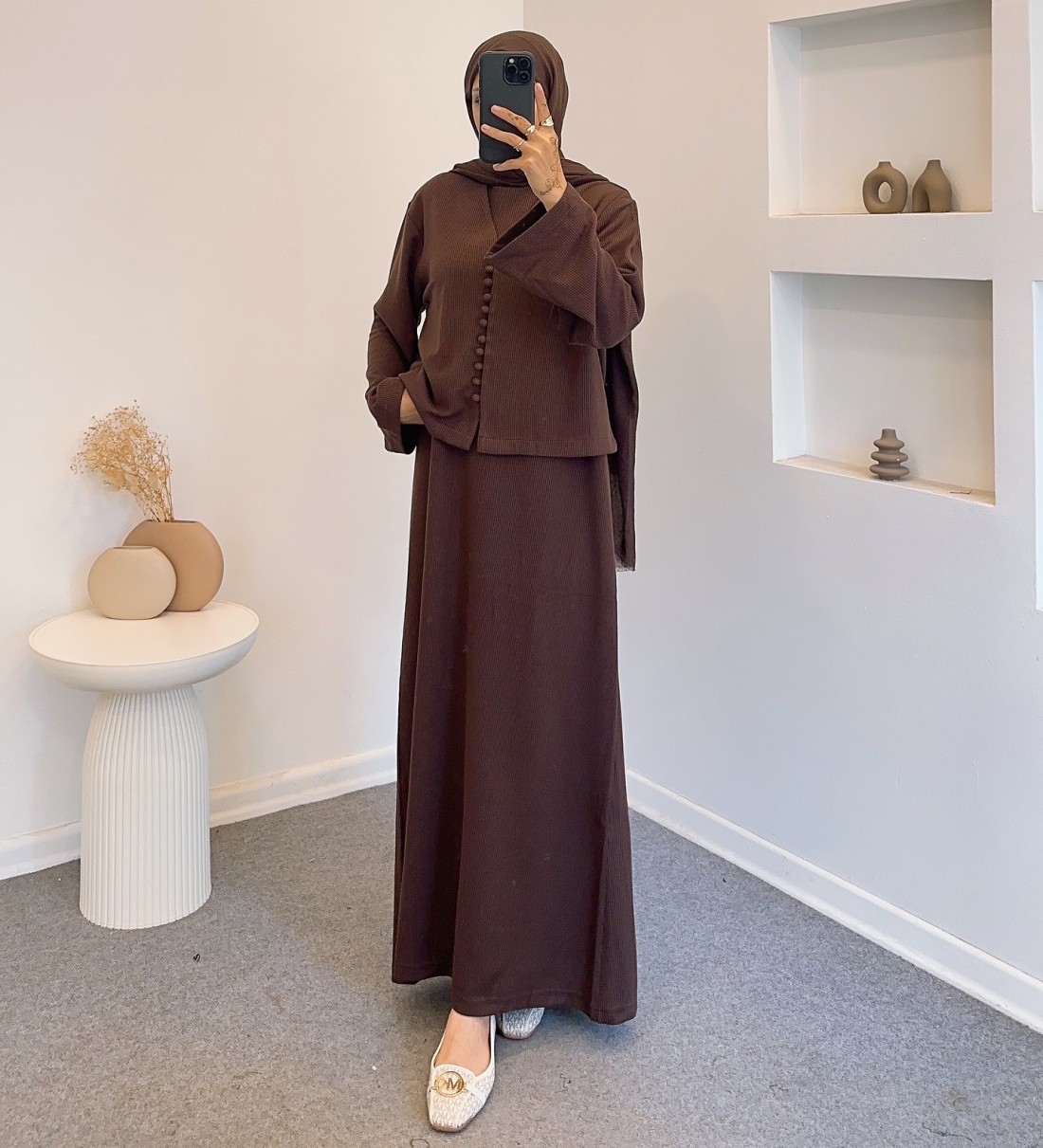 Stokta yok Stokta yok Ana Sayfa 25106 lora ikili takım elbise - haki 25106haki ₺1.899,00 Bisiklet yakalı, arkadan fermuarlı, sıfır kollu, rahat kalıp, hırkalı bağlama detaylı, geniş kollu astarsız hırkalı elbise takım. Elbise boy 140 cm Elbise 36 beden göğüs ölçüsü 52 cm / Bedenler arası 2 cm fark vardır. Hırka boy 50 cm Hırka göğüs ölçüsü 52 cm / Bedenler arası 2 cm fark vardır. Kol boyu 57 cm View