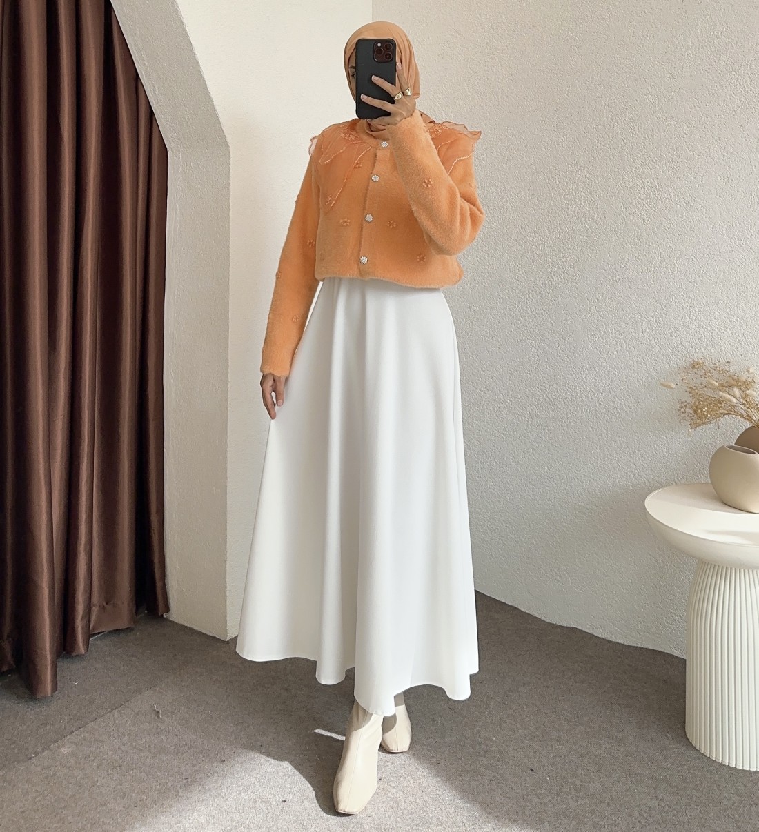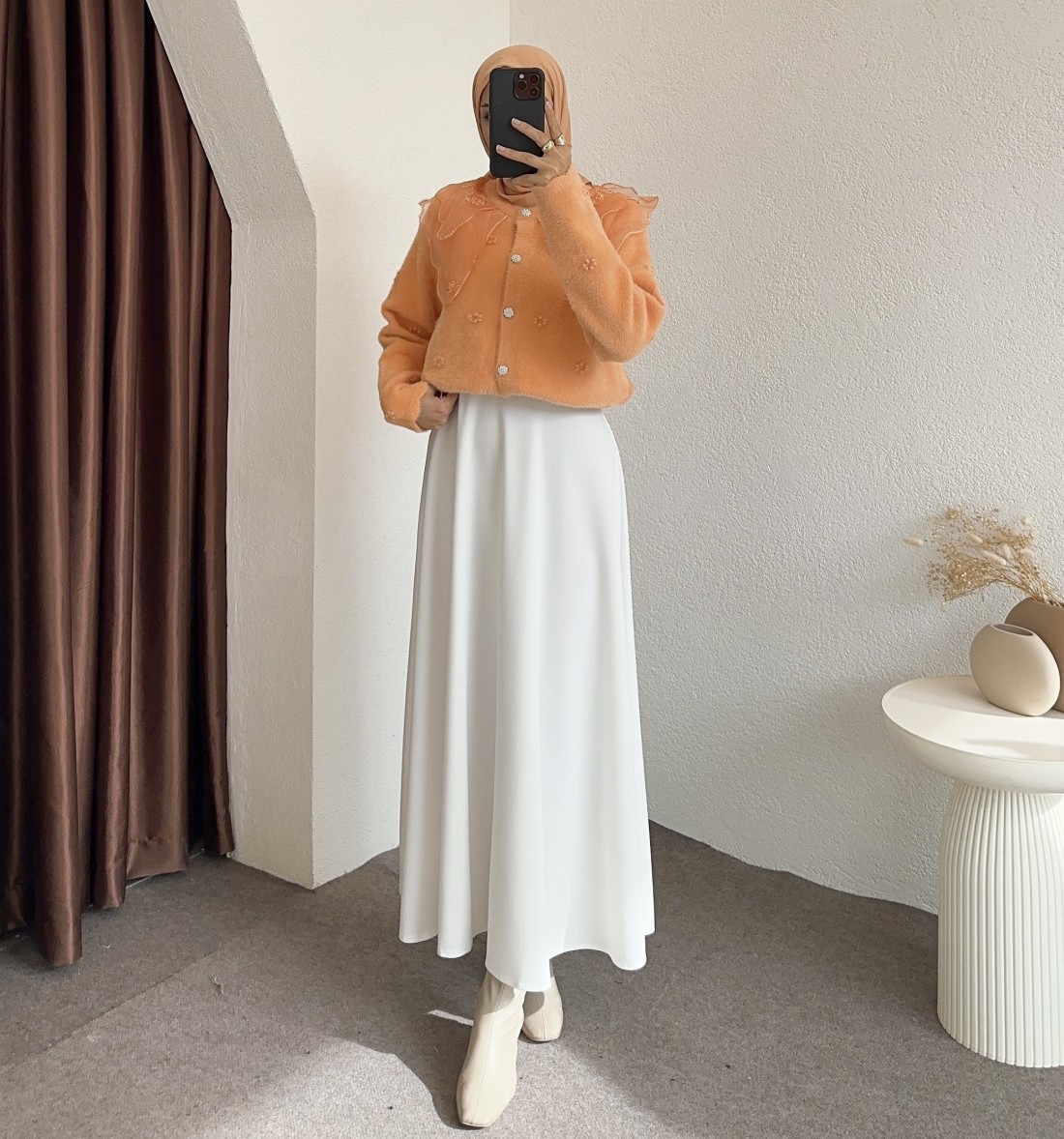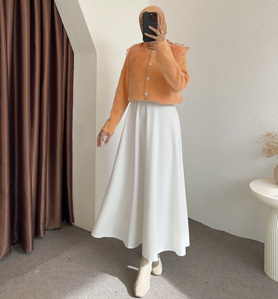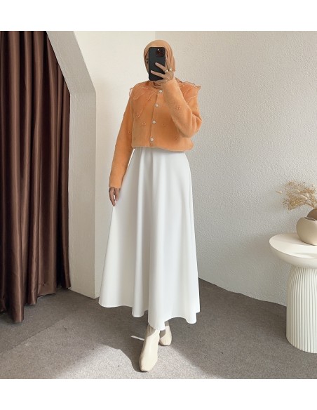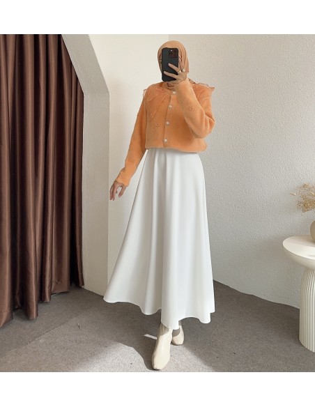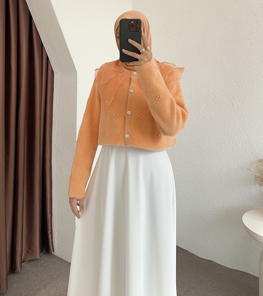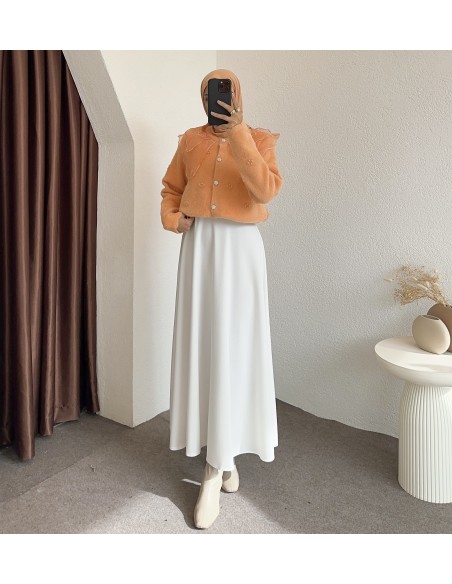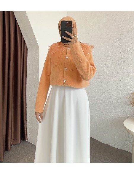 2624 bebe yaka tüllü hırka - Turuncu