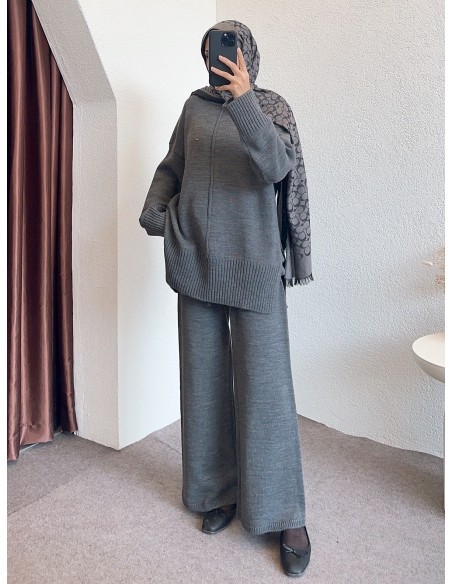 04604 tek yaka takım - gri