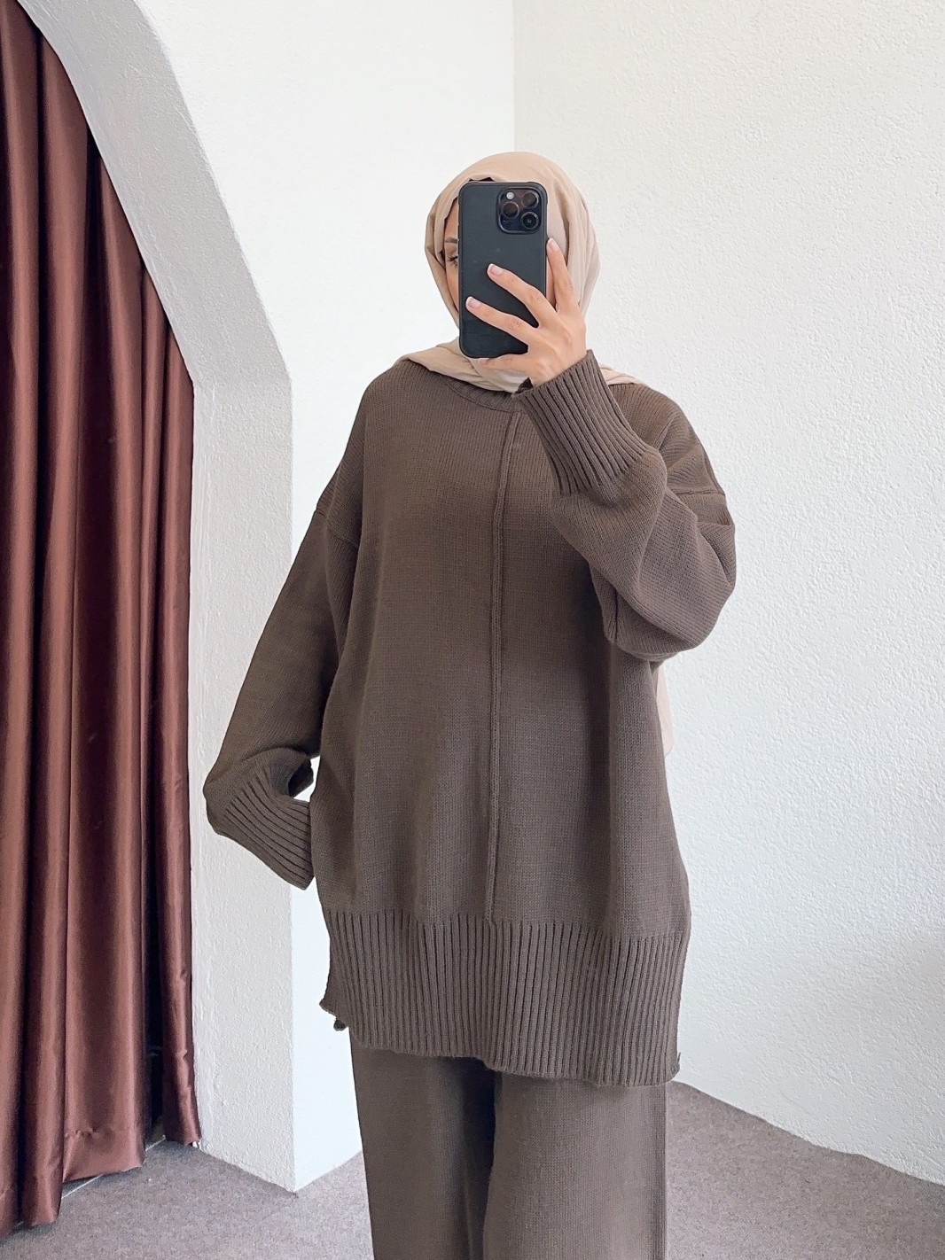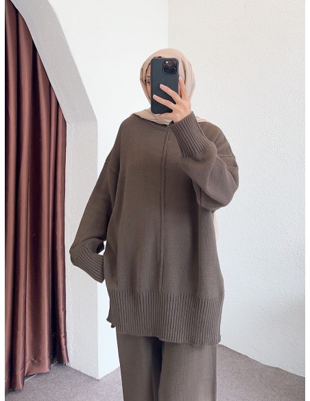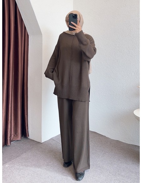 04604 tek yaka takım -Kahverengi