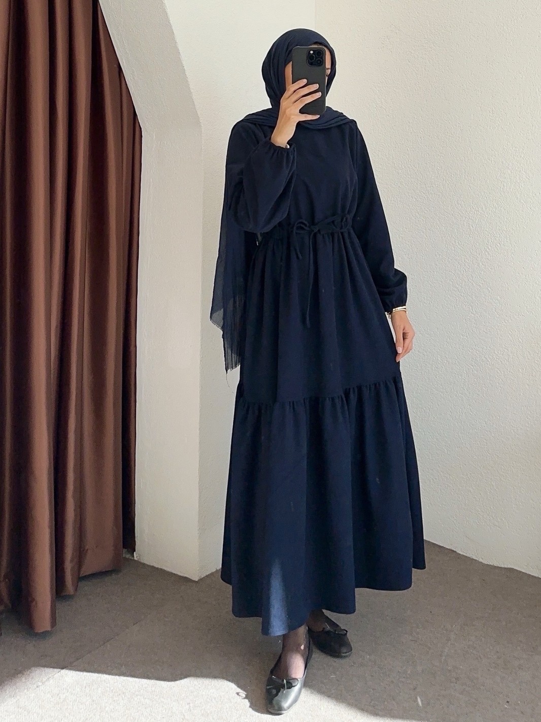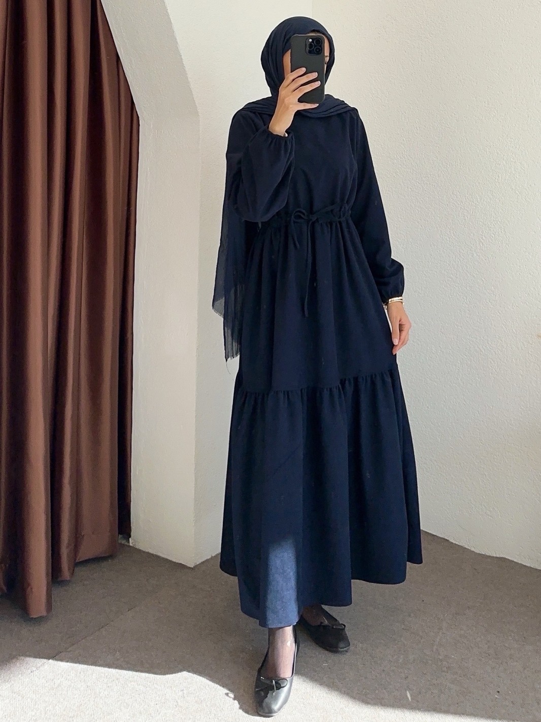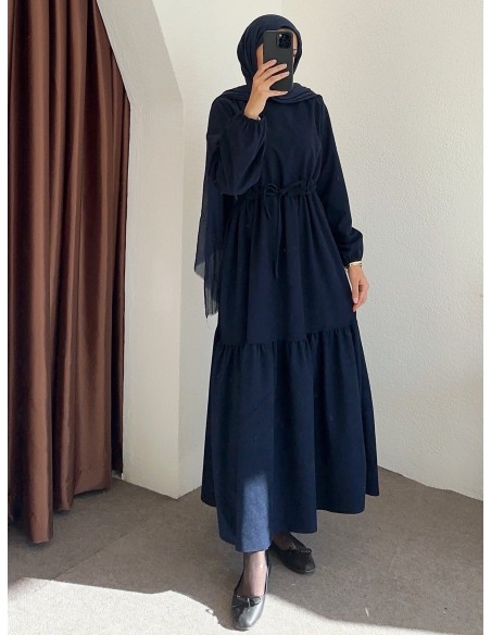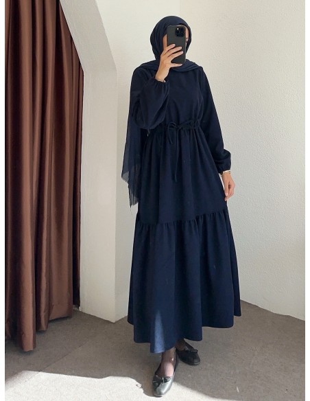 9624 bel büzgülü elbise - lacivert