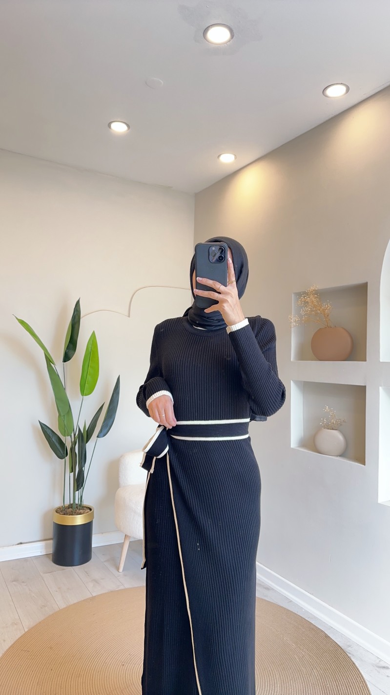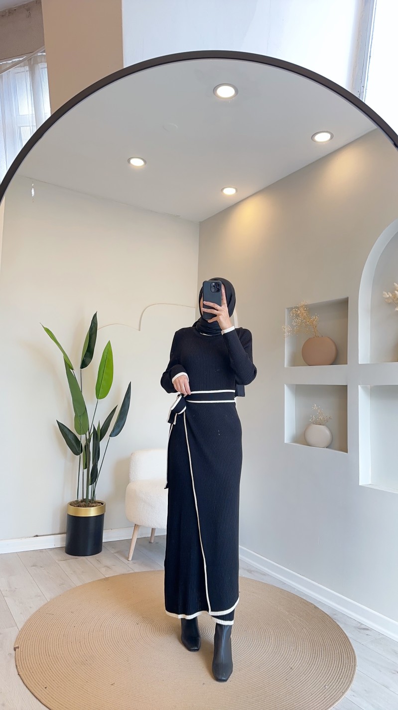 24890 iki parça triko elbise - siyah