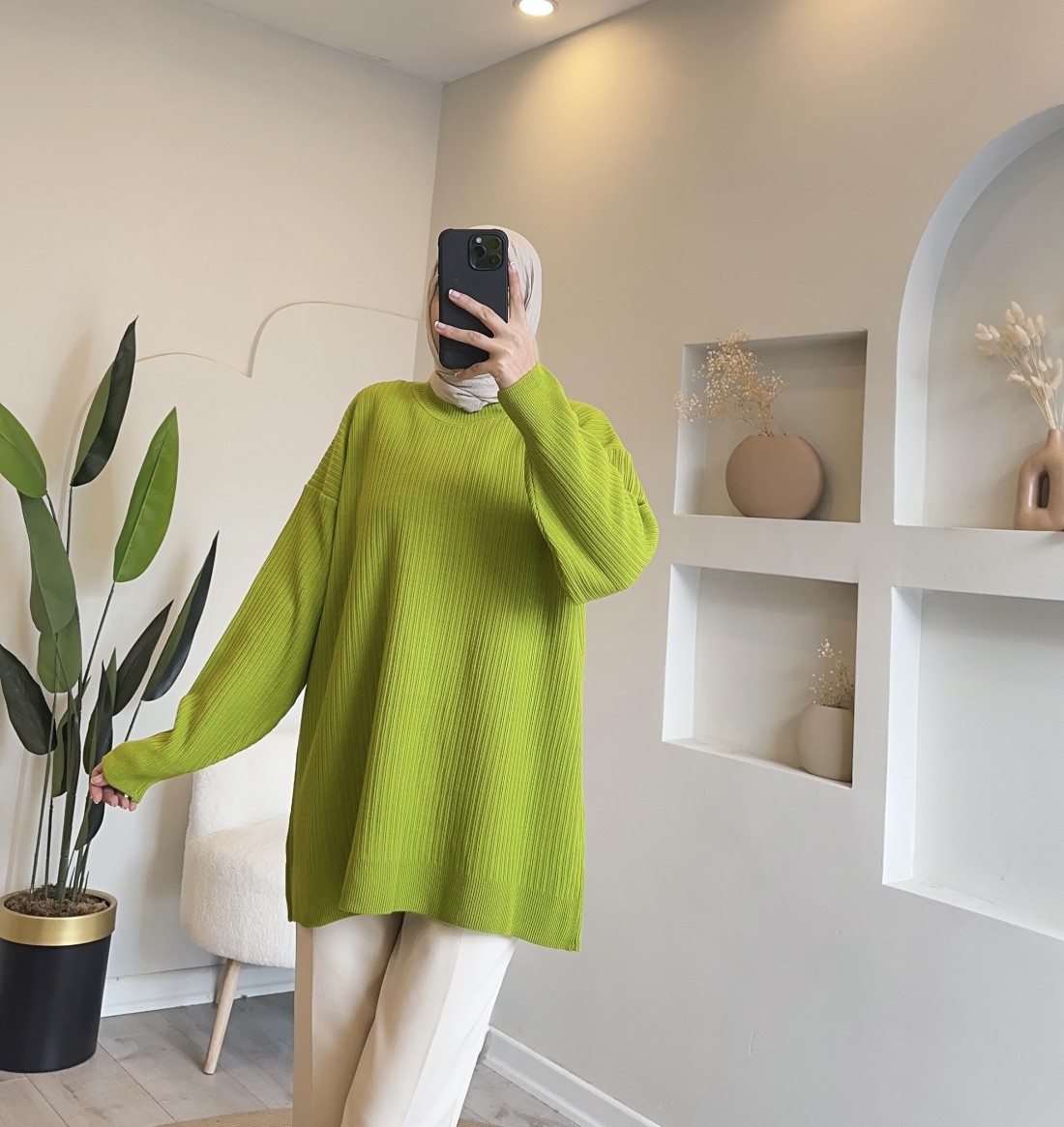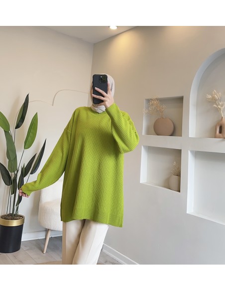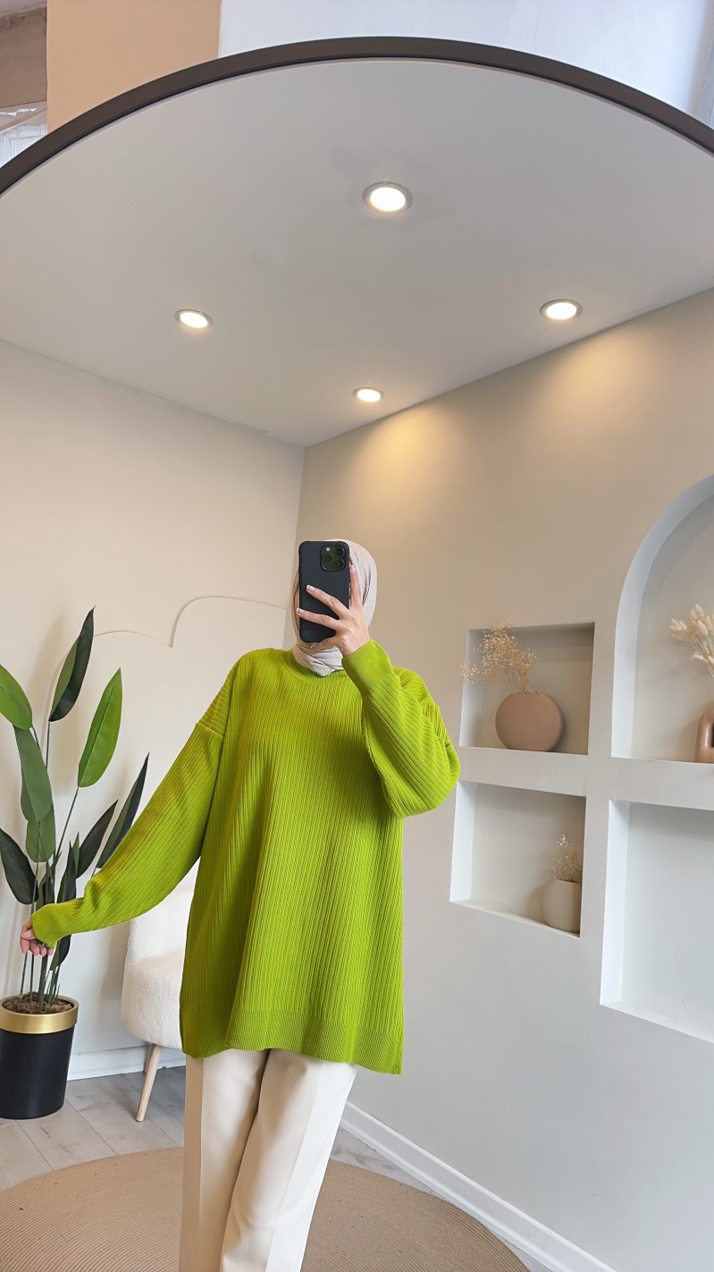 2914 düz triko tunik - yeşil