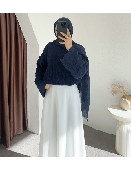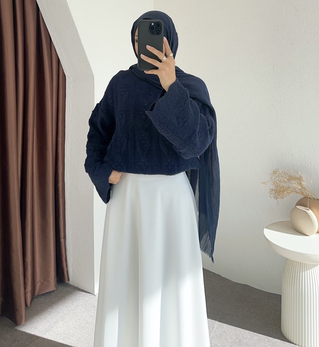 HK25135 Ajur örgü ponponlu kazak - Lacivert