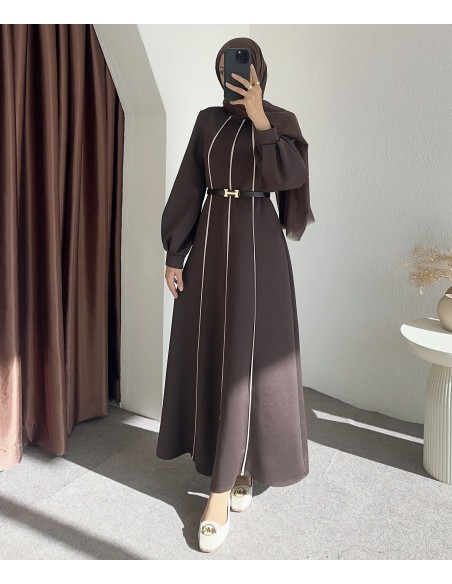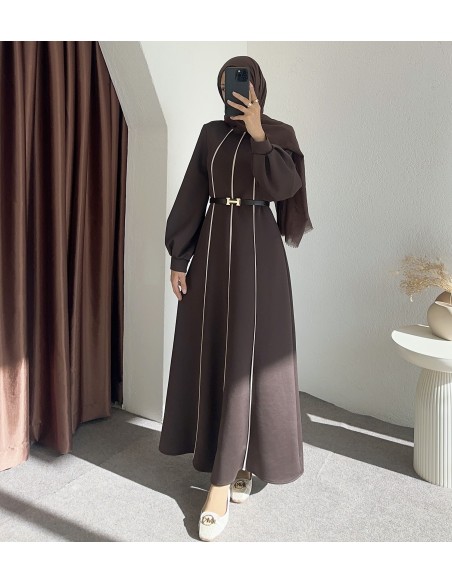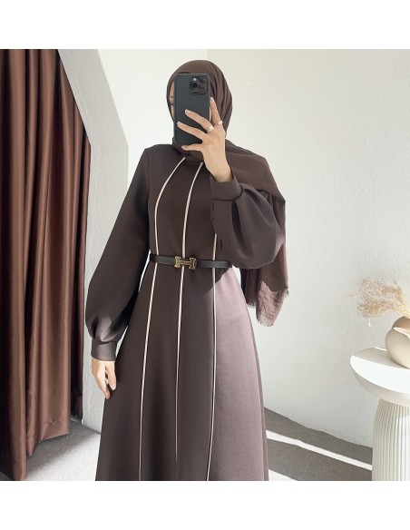 8246 çizgili scuba elbise - Kahverengi