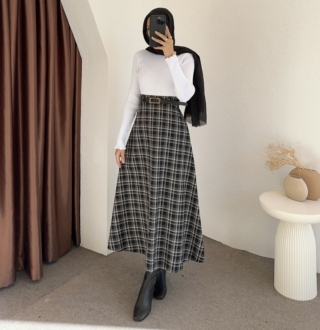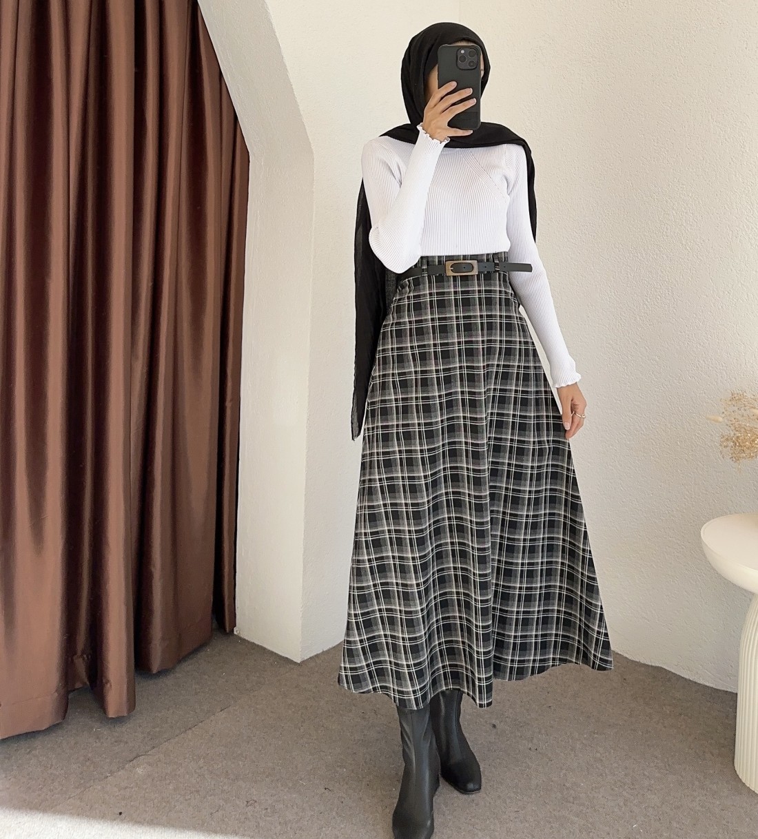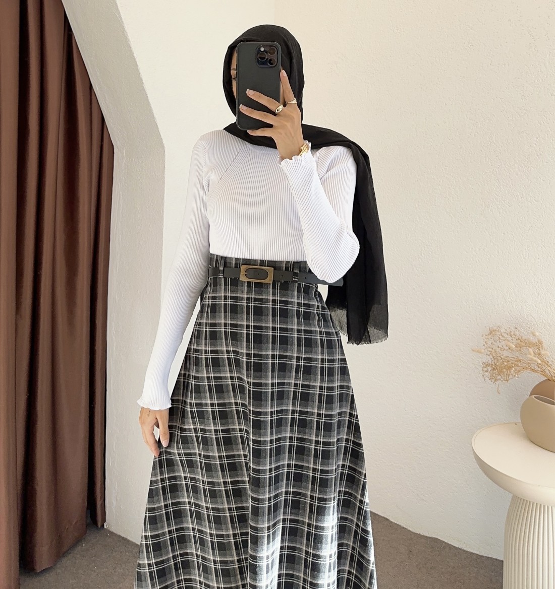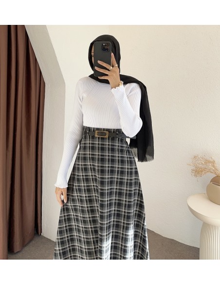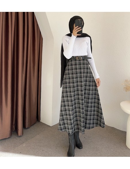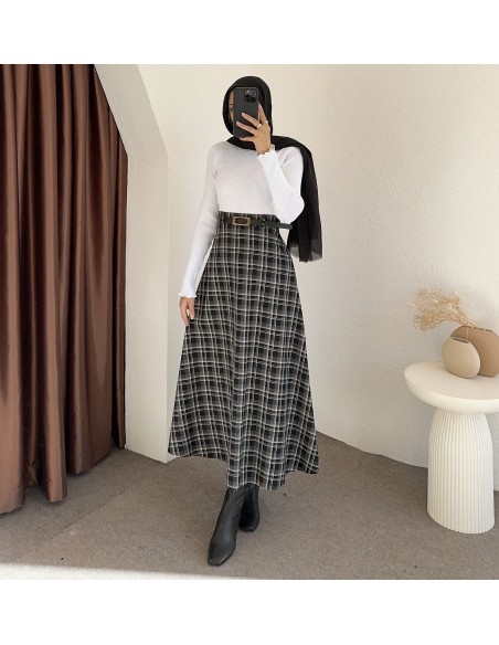 e238 ekose desen etek -Siyah