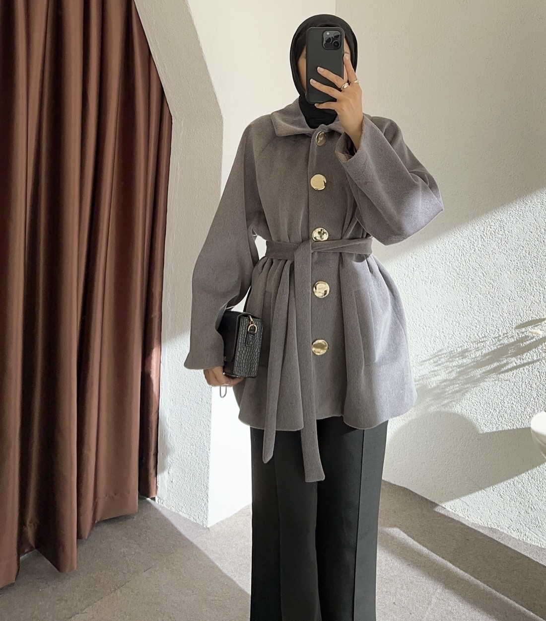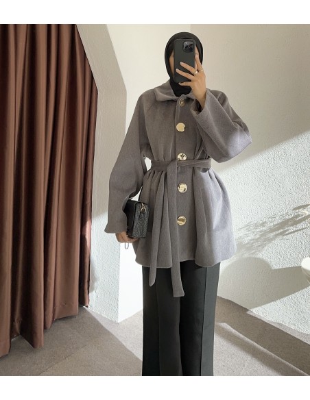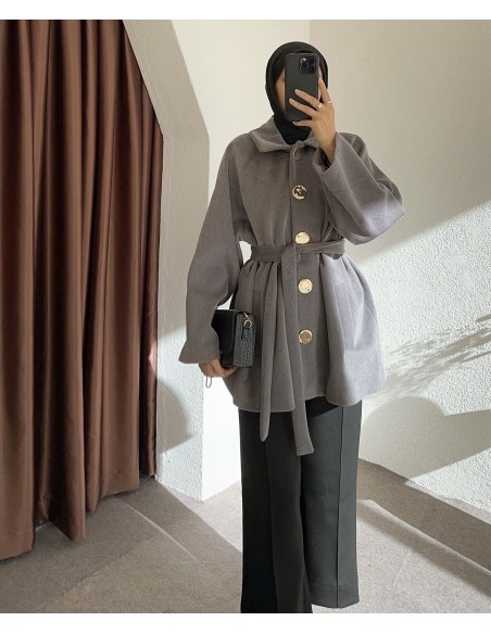 HK26095 Gold düğmeli kaban - füme