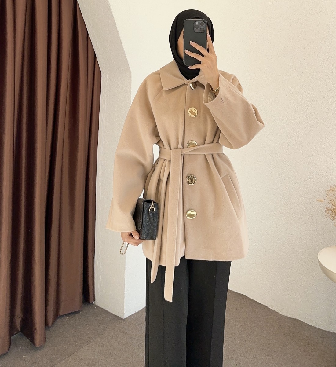HK26095 Gold düğmeli kaban - Bej
