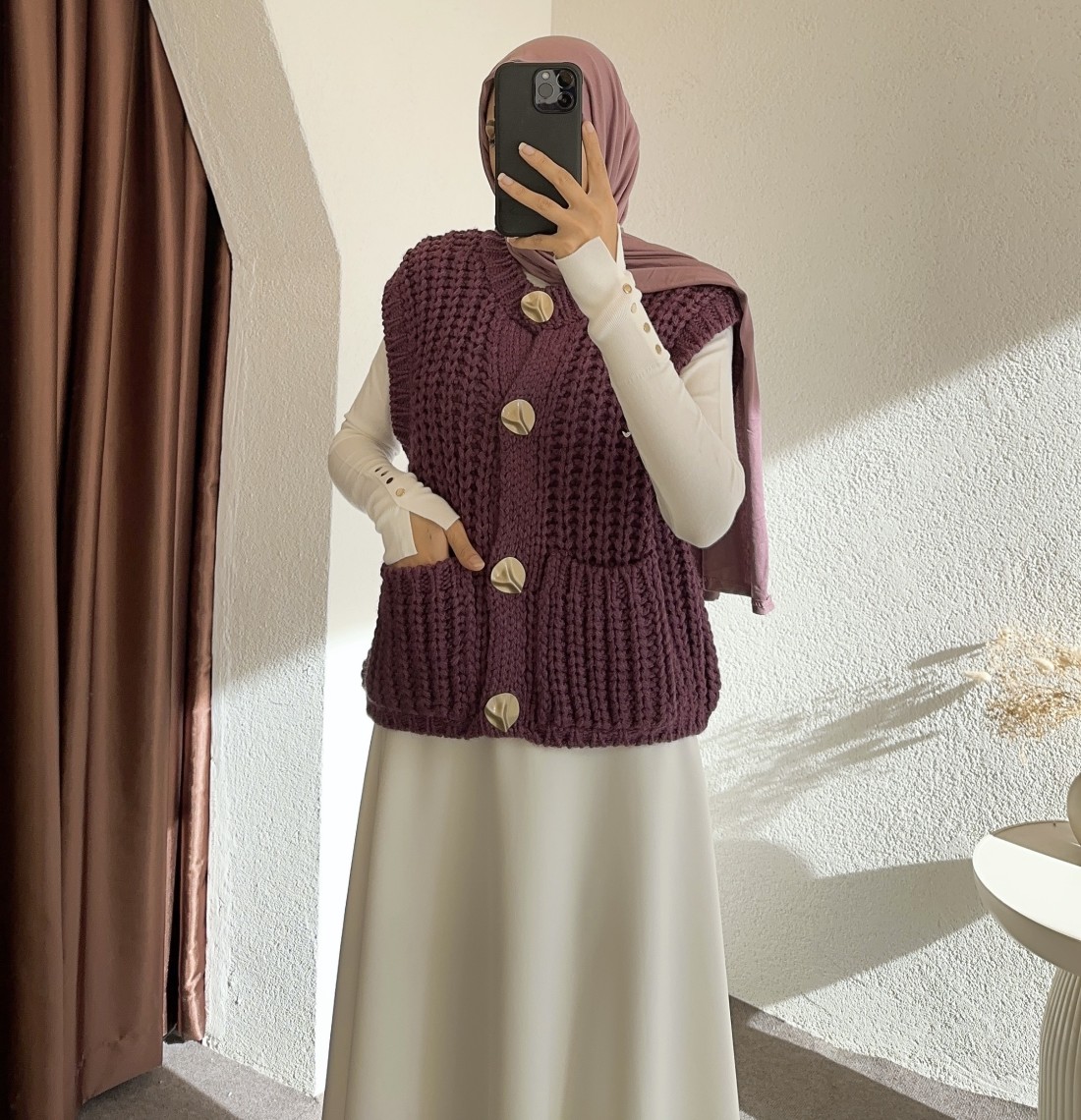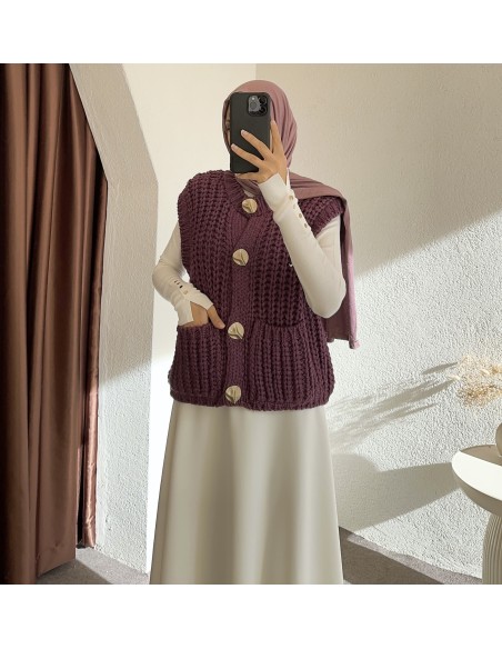 2395 örgülü yelek - Mor