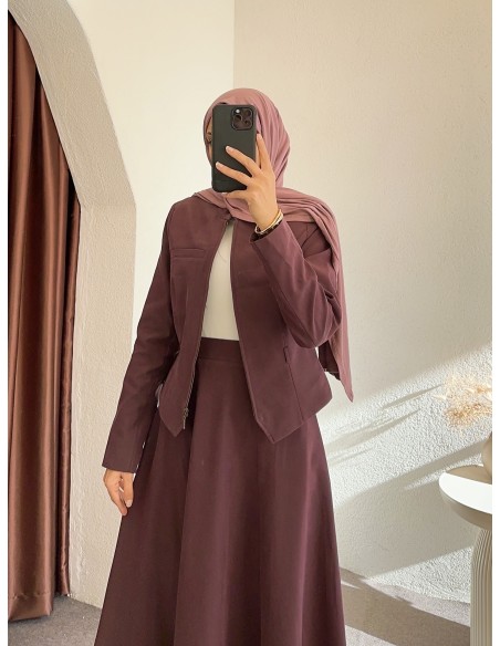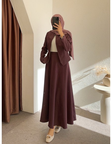 3171 kemerli süet takım -Mor