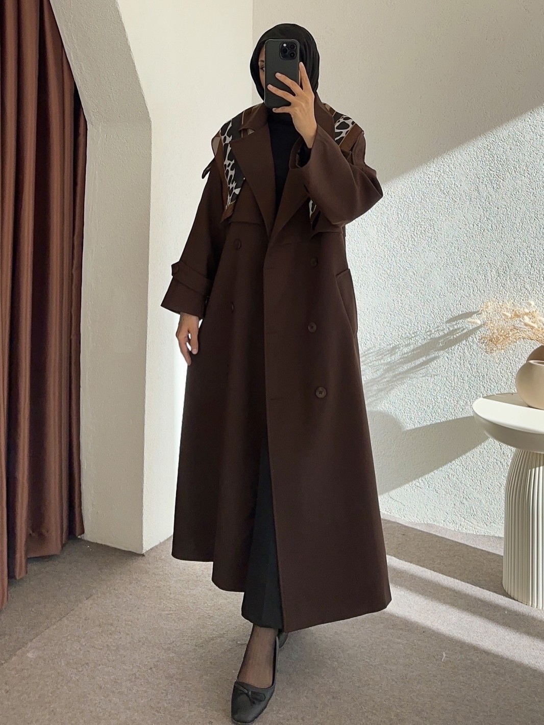 7589 astarlı trençkot Kahverengi